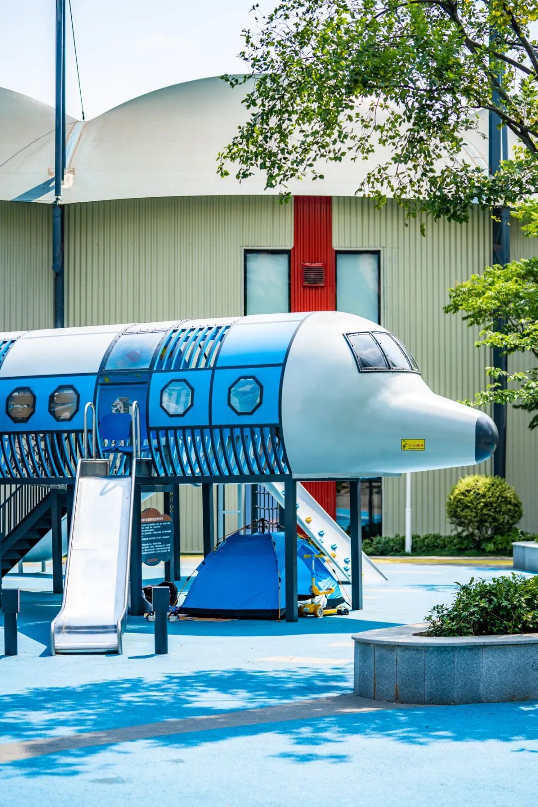 儿童娱乐区的设计也十分别出心裁,直升机、运输机、导弹等造型的游乐设施趣味性十足。