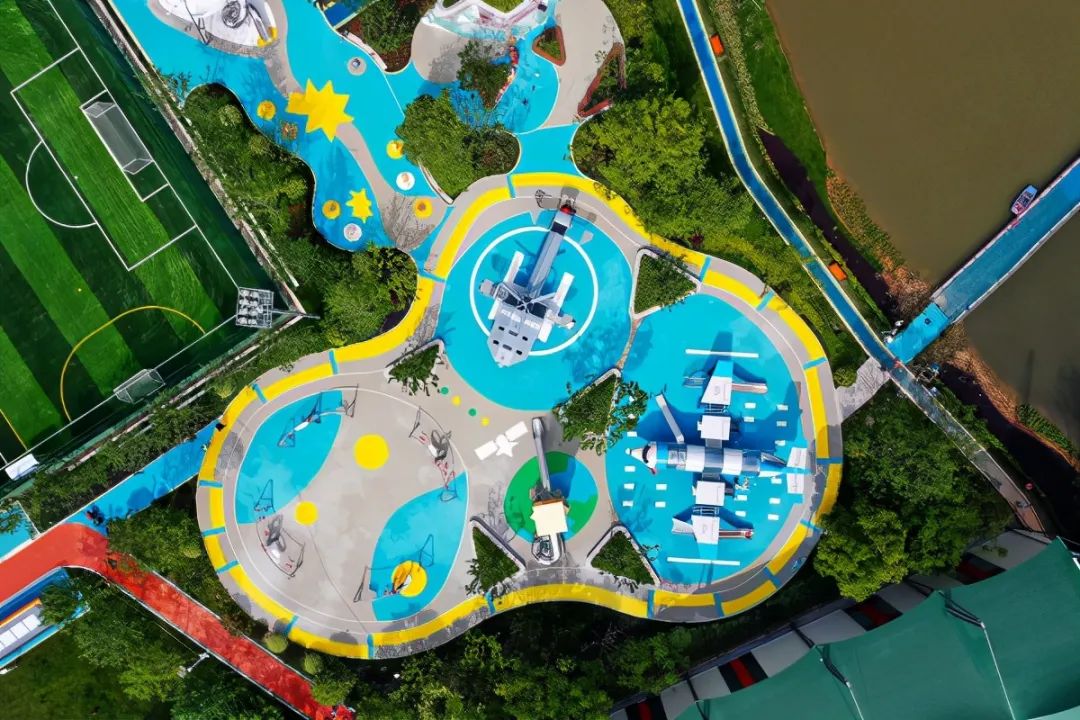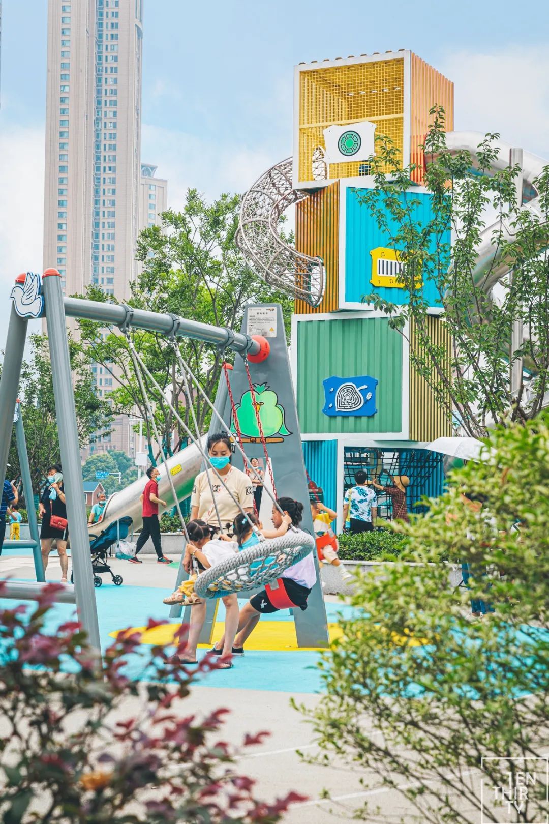 沙滩、滑索、儿童跑酷区和花样摇摇椅加上智能化的公园设施,使小朋友能在充满想象力的炫酷环境中,既能体验高科技,还能尽兴运动。