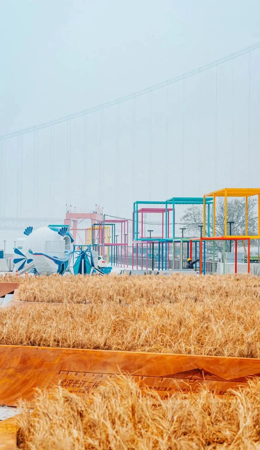 位于武汉汉阳国博江滩,杨泗港大桥南岸桥头公园简直就是孩子们的天堂!