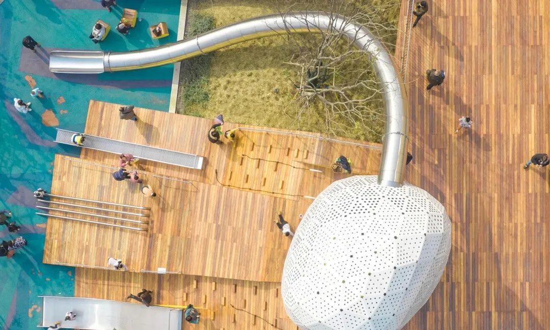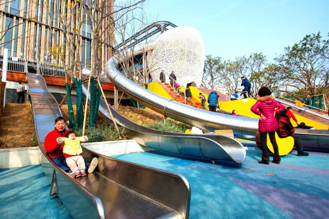 公园还拥有六根超长的炫酷滑梯,让孩子们在运动攀爬的同时,还能体验速度与激情,是休闲的好去处!