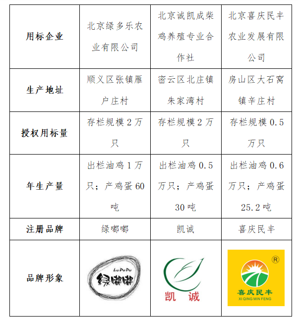 目前北京油鸡的农产品地理标志授权用标企业共有3家,具体为: