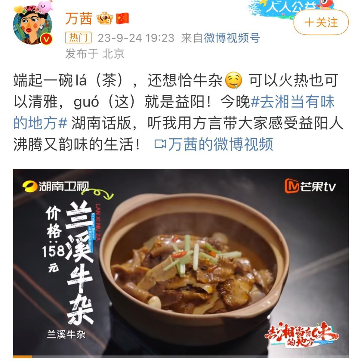 在微博,网友“夏天的孜子花”表示看完常德篇“掉了一斤的口水”,连出生于湖南益阳的万茜都忍不住评论,“想恰牛杂!”