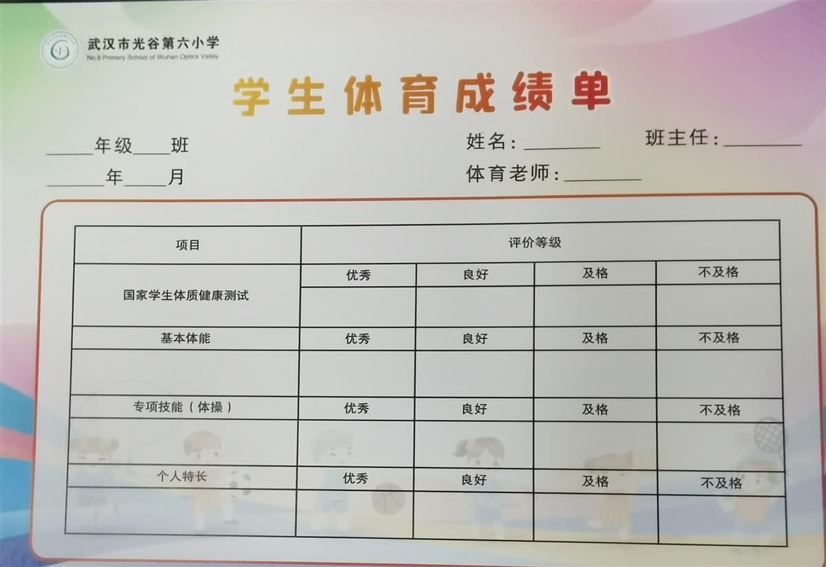 1月26日,武汉市光谷第六小学(下文简称“光谷六小”)4000多名学生领到了两张成绩单。多出的那一张,是体育成绩单。