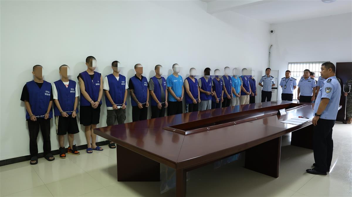 仙桃警方对14名涉诈人员集中宣布逮捕(通讯员供图)