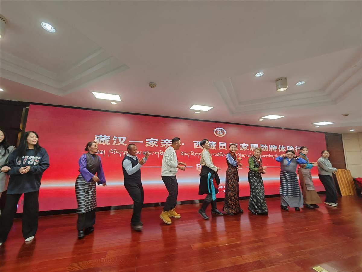 “藏汉一家亲·西藏员工家属劲牌体验行”活动上,劲牌公司藏族员工和亲人一起跳舞