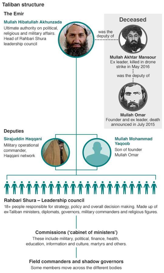 BBC曾报道,2016年5月21日,塔利班第二代领导人曼苏尔被袭身亡,塔利班内部进行了紧急权力交迭,阿洪扎达被委任为塔利班的新任最高领导人,所有成员都宣誓效忠于他,四天后就公布了他继任的消息。