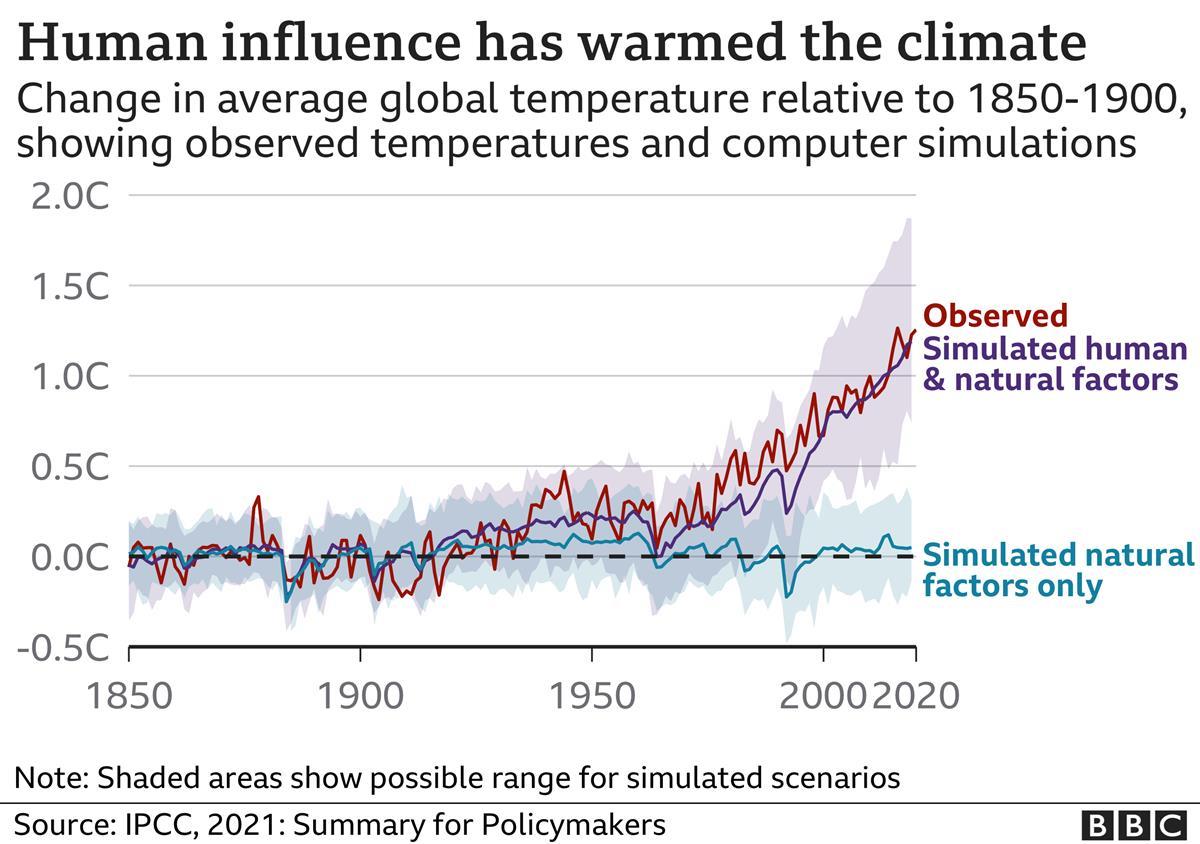据BBC报道,2011年至2020年间的十年间,全球地表温度比1850年至1900年间高出1.09℃。过去五年是自1850年以来有记录以来地球最热的五年。