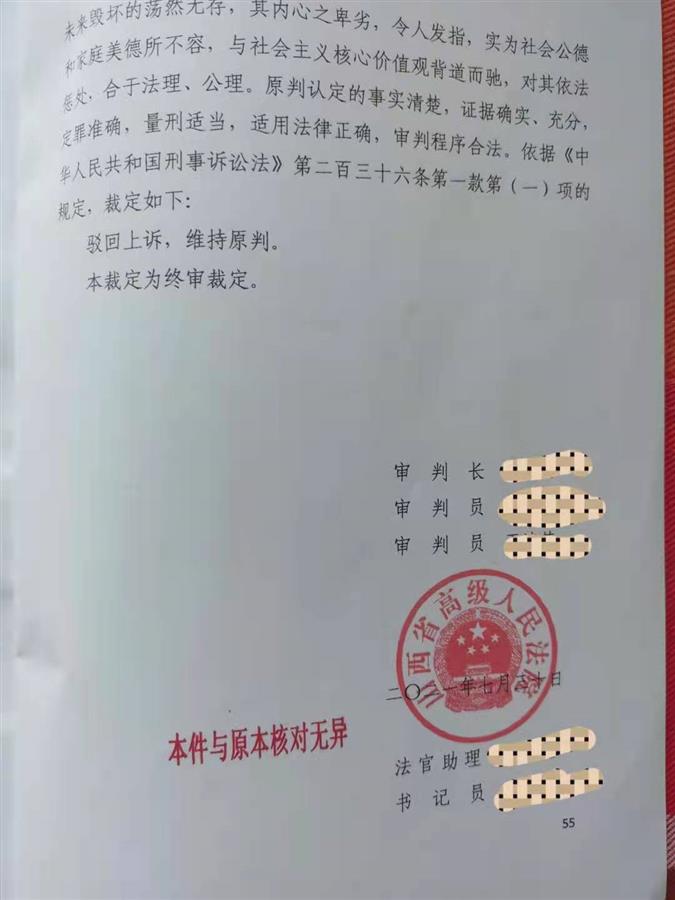最终法院依据《中华人民共和国刑事诉讼法》第二百三十六条第一款第(一)项的规定,裁定如下:驳回上诉,维持原判。本裁定为终审裁定。