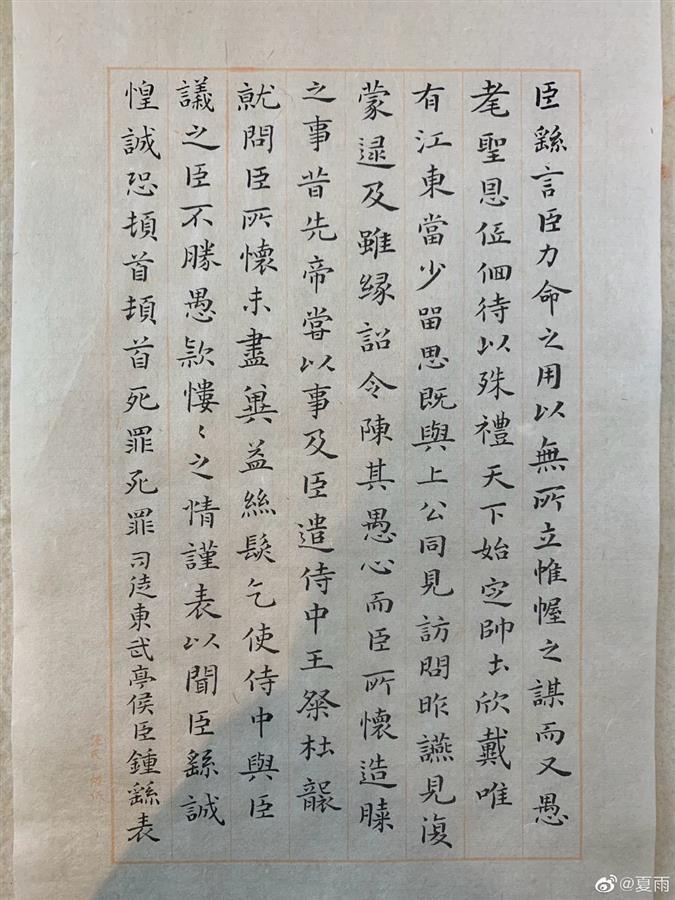 除了孙俪,演员夏雨的字也得到不少书法家的好评,“看得出来是经过大量专业的练习而达到一定艺术高度的。”