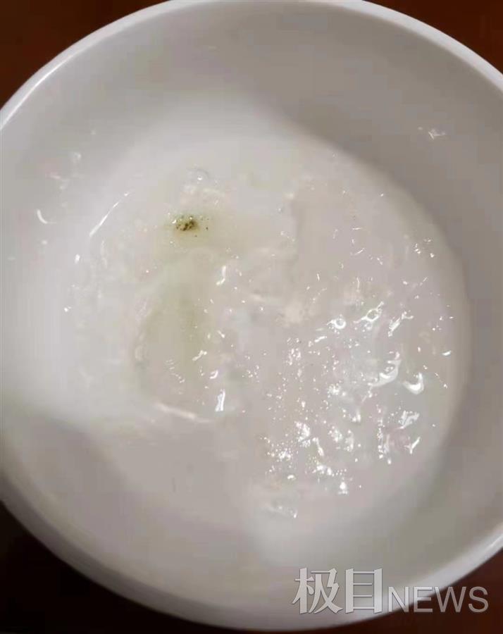 8月9日晚,女儿又吃了一碗燕窝,剩下一点没吃完的,陈女士就自己吃了。谁知,刚吃没两口,她就发现嘴里有块东西很硬,而且有异味。吐到碗里一看,是一小坨硬东西,上面还有黑灰色不明物质,像发霉了。