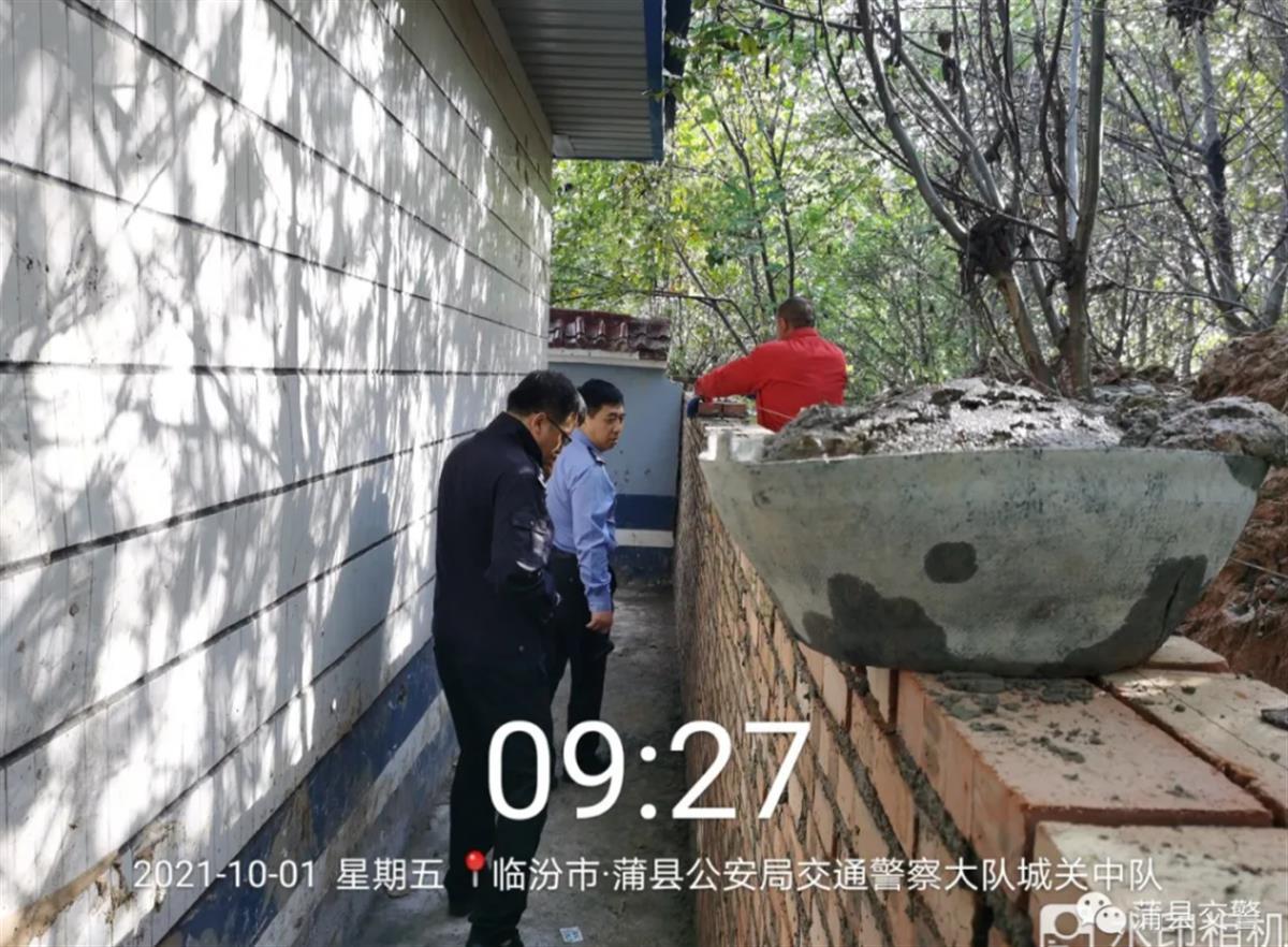 查看垒墙情况(来源:微信公号“山西临汾交警”)