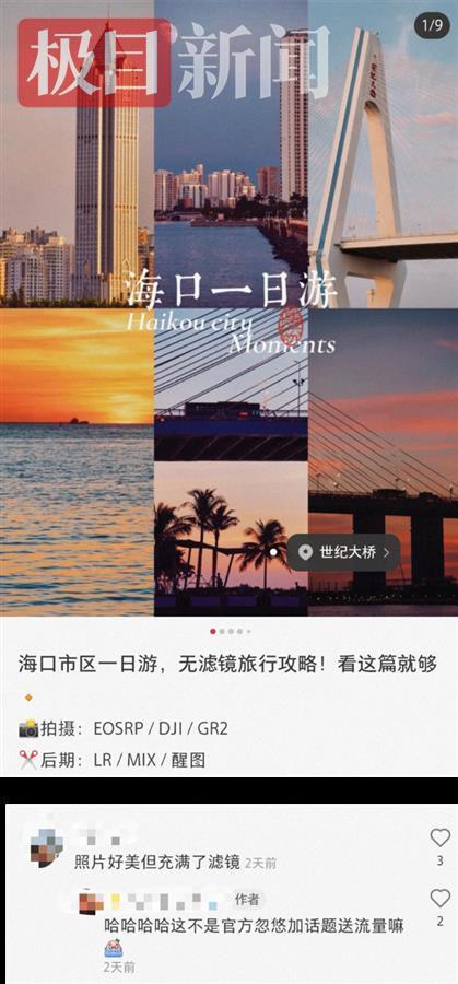 但极目新闻记者点进“无滤镜旅游攻略”的话题发现,发布的笔记不少还是添加了滤镜。有博主直言,参加活动是为了获得平台的流量扶持。