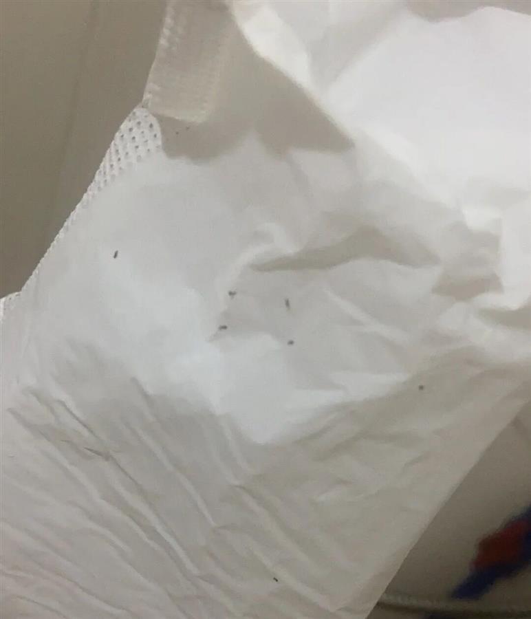 有着同样遭遇的,还有陕西的唐宇(化名)。今年9月,唐宇网购高洁丝卫生巾组合套装。等她打开一片新的卫生巾准备使用时,发现有“黑色的东西”掉了出来,她仔细一看,发现是类似虫卵的异物。