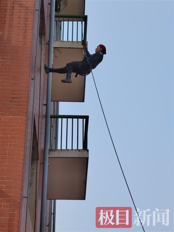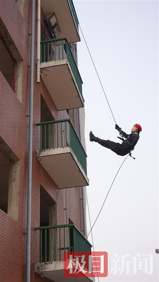 随后,女子特警队员们演练了高楼索降,既有身体垂直墙面“跑”下快动作,也有贴墙倒立悄无声息如同壁虎。极目新闻的网络直播间里,酷炫的动作引得网友纷纷点赞。