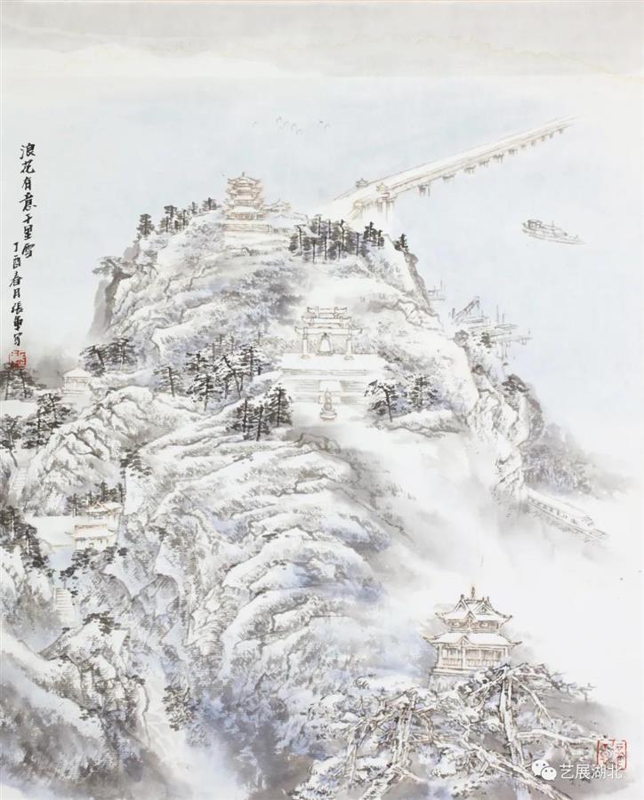 张军 《当代黄鹤楼·浪花有意千里雪》 42cm×34cm 纸本水墨 2017年