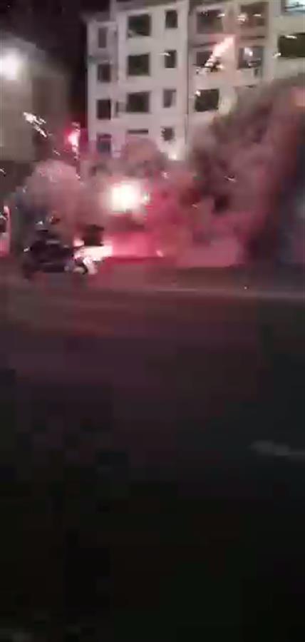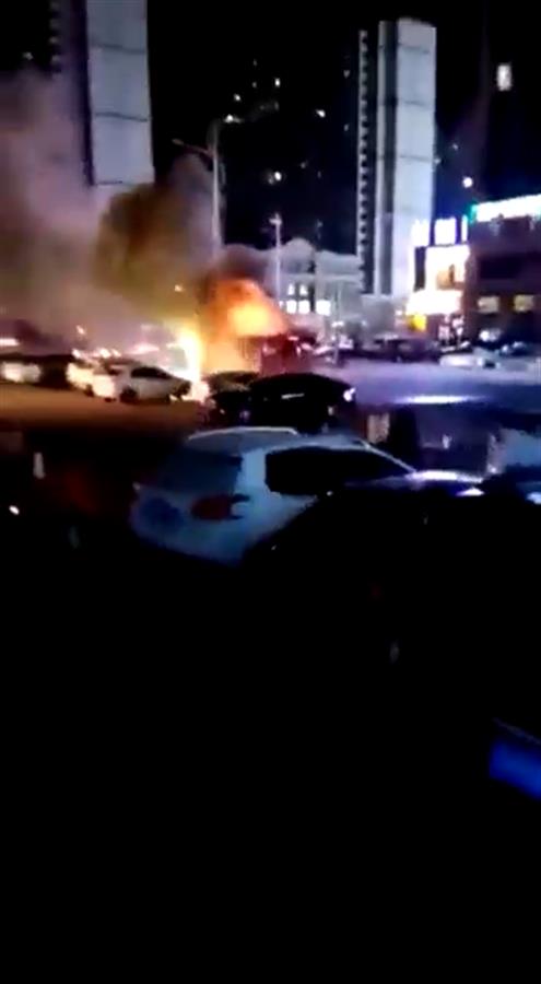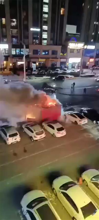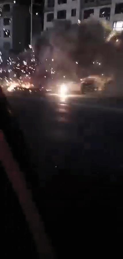 网络上流传的多段视频显示,在昏暗的路灯下,一个棚子火光四溅,并且噼里啪啦响个不停,还有烟花在空中绽放。视频中,起火地点附近停放有多辆私家车,还不时有车辆经过。从视频中可见,有消防车在现场。