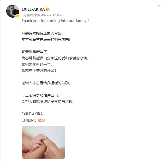 随后林志玲的老公黑泽良平也发文公布了这一喜讯,表示希望可以在新年和大家分享这份爱和感谢的心情。