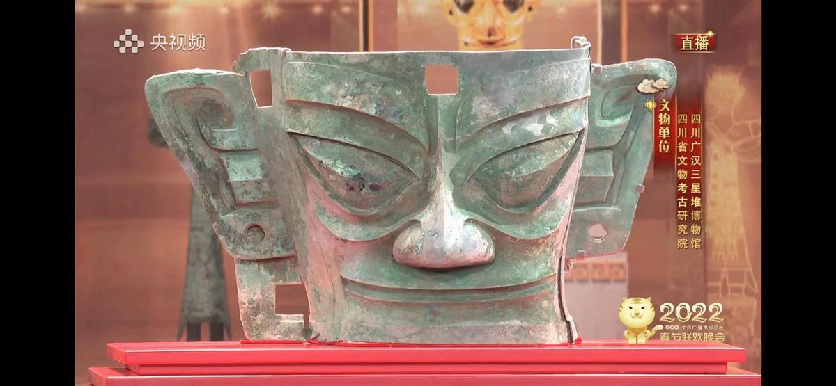 四川省文物考古研究院三星堆考古研究所所长冉宏林在舞台上激动地向大家介绍道,亮相春晚的青铜大面具出自三星堆遗址3号坑,是目前已知世界上最大的青铜面具,拥有3000多年历史。