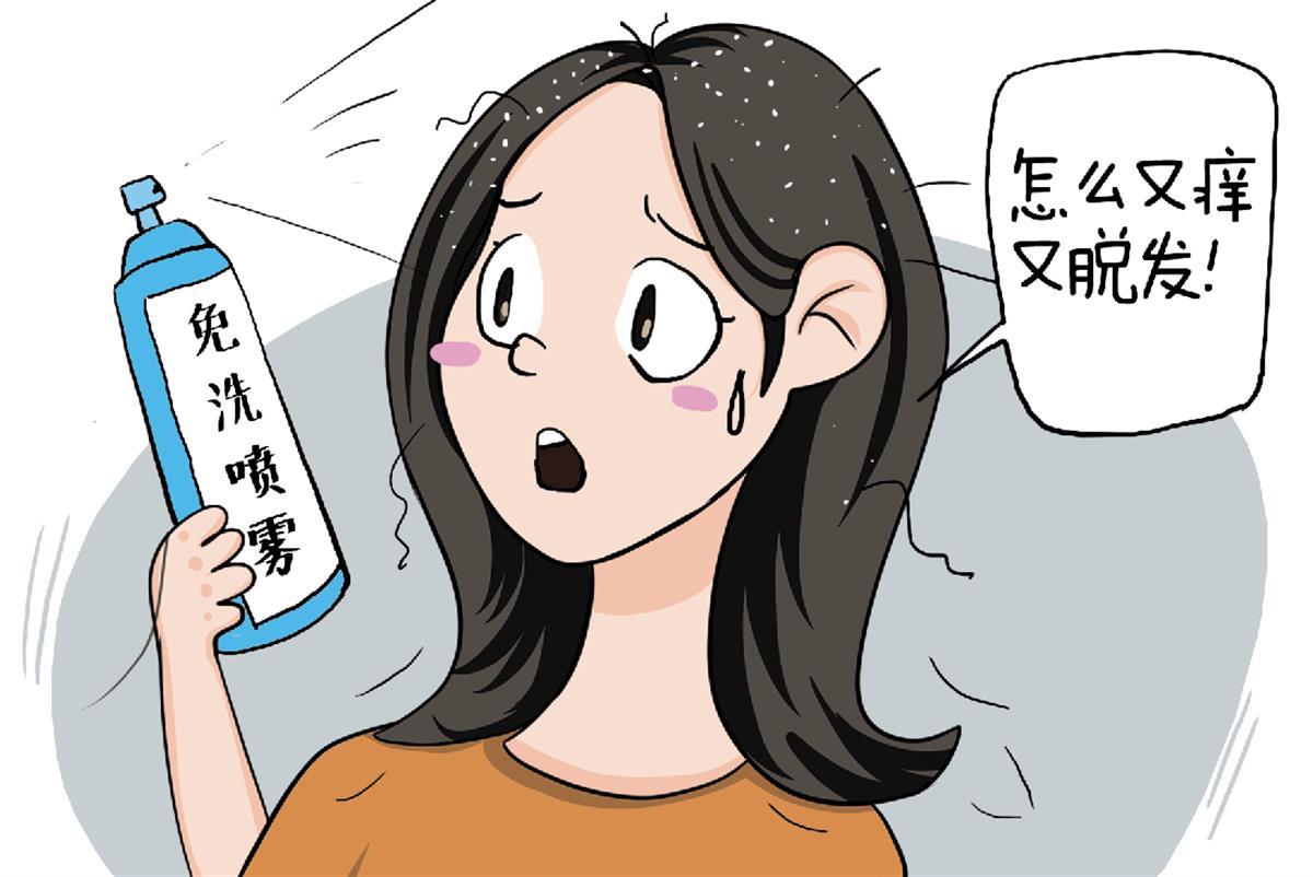 湛世萍强调,频繁使用免洗喷雾而不及时清理头皮分泌的油脂,会造成头皮油脂积聚,形成毛囊堵塞,更有甚者会引起脱发及脂溢性皮炎等皮肤问题。另外,免洗头喷雾中的化学成分相较于其他洗发护发产品更复杂,所以易过敏体质的人群使用后可能会产生过敏反应,导致头皮红斑、瘙痒,甚至水疱等不适,此时应立即停用,并冲洗干净,情况严重时要及时就医。正常体质的人群若应急使用了免洗喷雾,当日一定要及时清洗,孕妇及哺乳期妇女则不建议使用。值得注意的是,市面上免洗喷雾等所谓速效去油产品良莠不齐,不乏一些三无产品滥竽充数,而这其中很可能含有对头皮,甚至对身体产生危害的成分,长期吸入难免会影响健康。