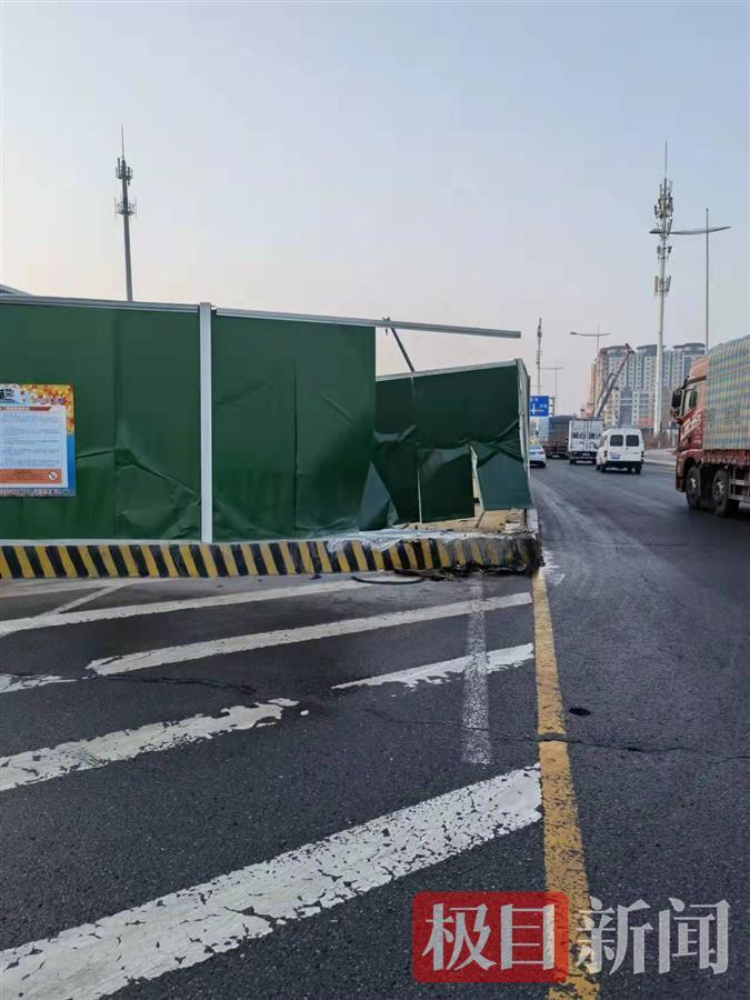 14日下午,极目新闻记者来到位于郑州华夏大道与太和路交会处的事发现场,看到破损的挡板已经换新,挡板下的水泥墩上仍留有被撞的缺口。
