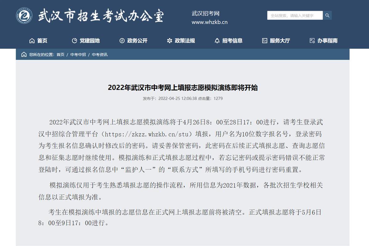《2022年武汉市中考网上填报志愿模拟演练即将开始》