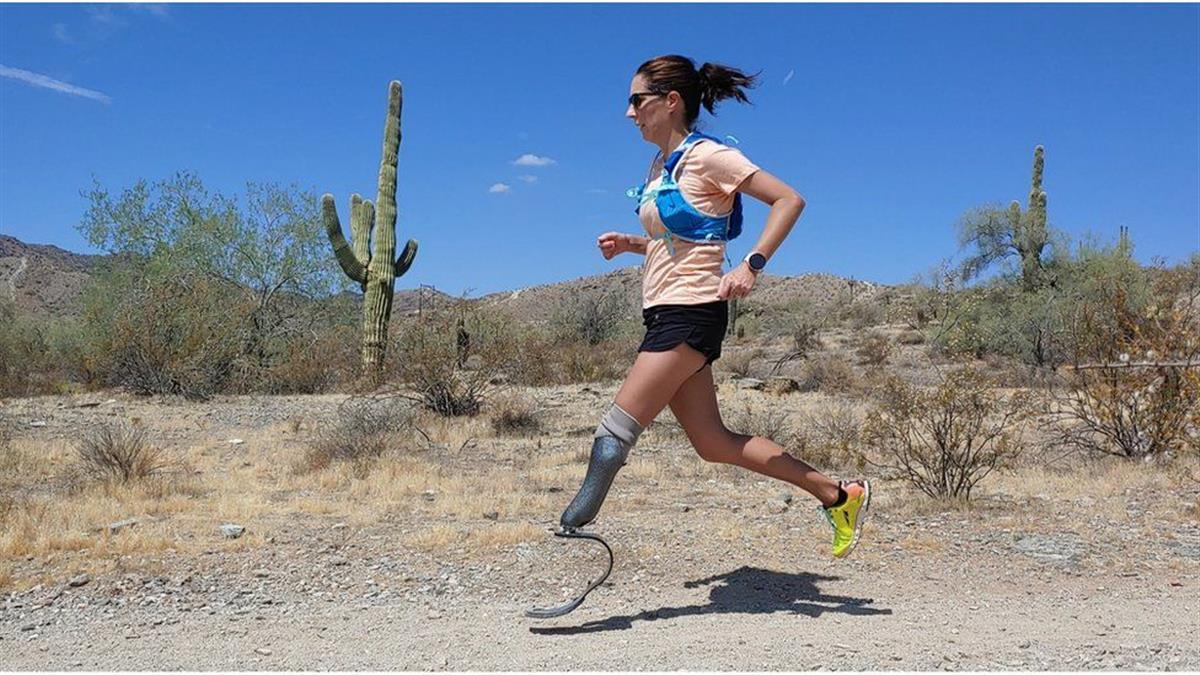 为了跑步,她买了一个特殊的假肢,报名参加了她的第一次半程马拉松项目。从那以后,她开始探索更远的距离和不同的地形。