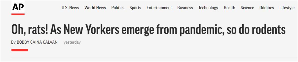 随着气温升高,再加上纽约市现已解除大部分防疫限制措施,当地民众开始担心,市民外出就餐增加及室外活动的恢复会刺激更多的老鼠在街头流窜。