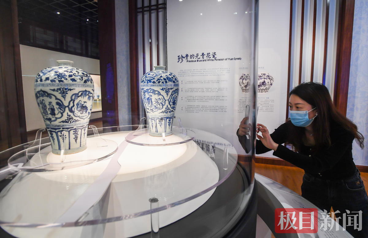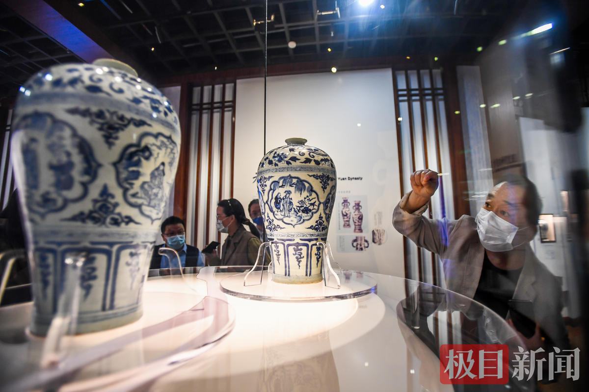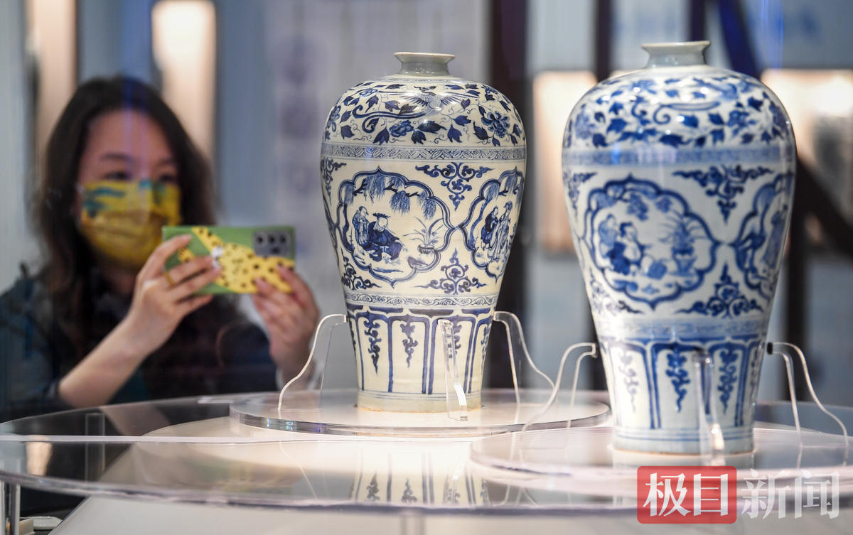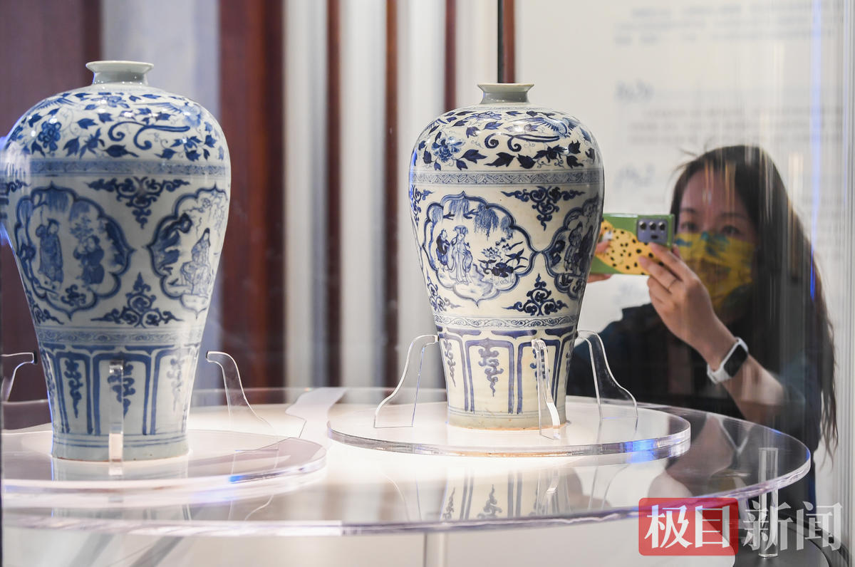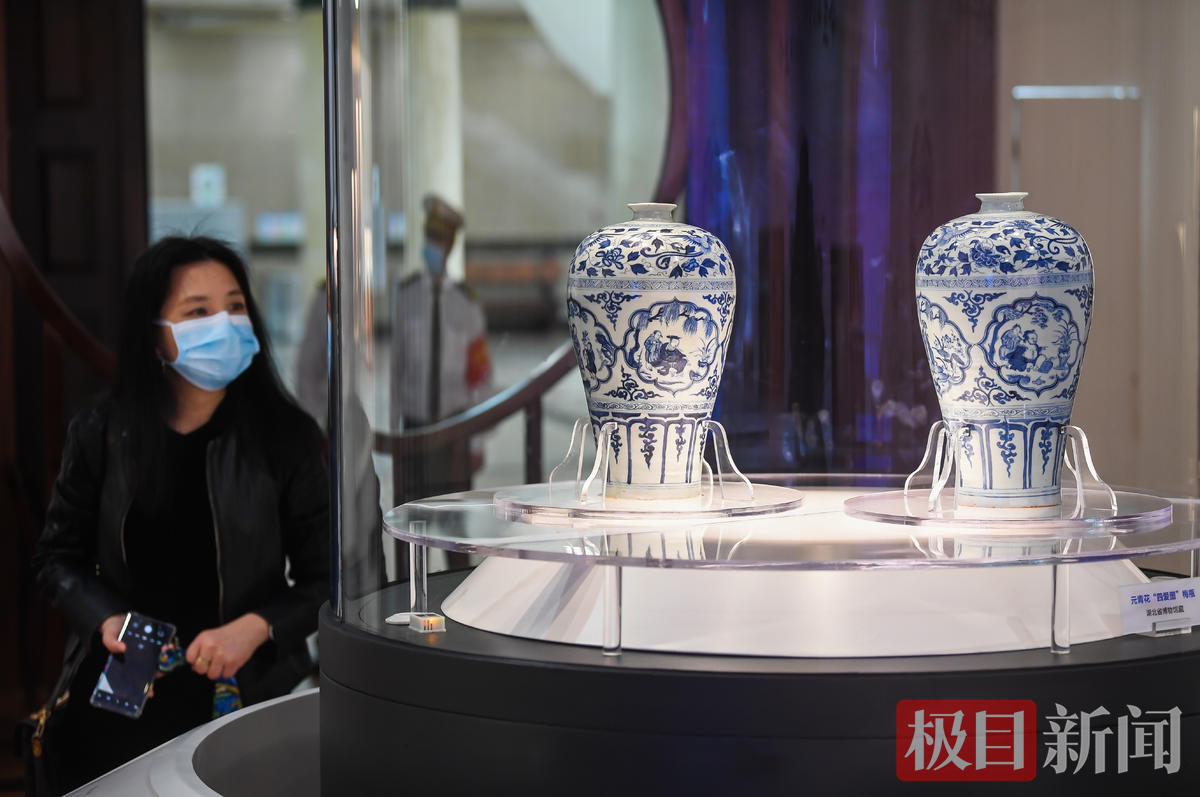湖北省博物馆保管部主任蔡路武向极目新闻记者介绍,目前全世界元青花瓷器真品只有400件左右,人物纹元青花更是少之又少,十分珍贵。“目前所出现的元青花四爱图梅瓶,就只有两件,都在武汉。”湖北省博物馆的元青花四爱图梅瓶、武汉博物馆的元青花四爱图梅瓶,分别是两馆的镇馆之宝。