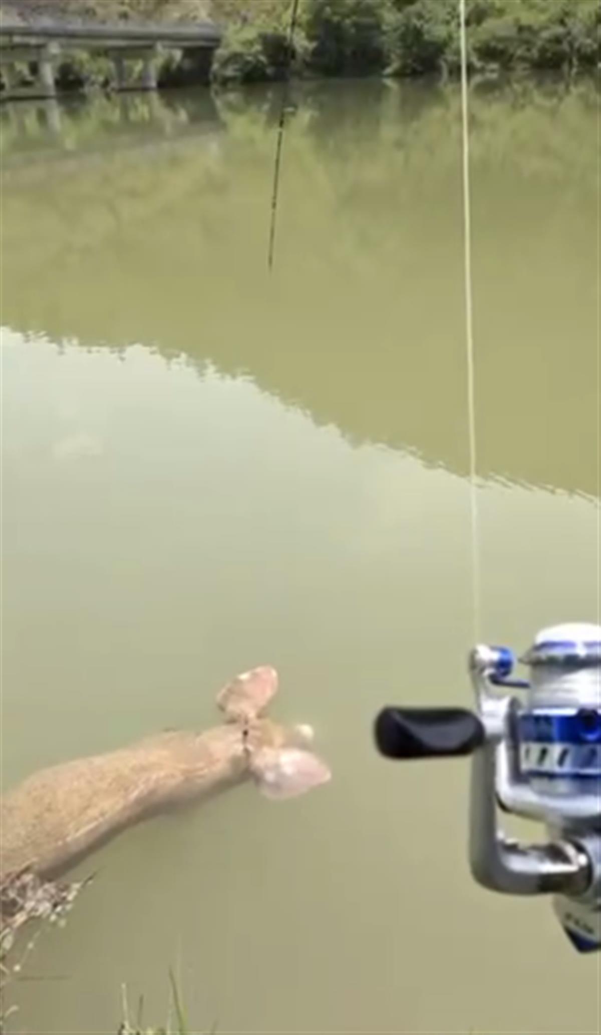 “我刚开始钓鱼一个月左右,还一条鱼都没钓到过,当时感觉钓到一个很重的东西,本来还以为钓上大鱼了,拉过来一看是一头死猪。”匡先生说,最初他在岸边并没有看到死猪,鱼钩甩出去约30米,花了2分钟左右才把猪拉到岸边。