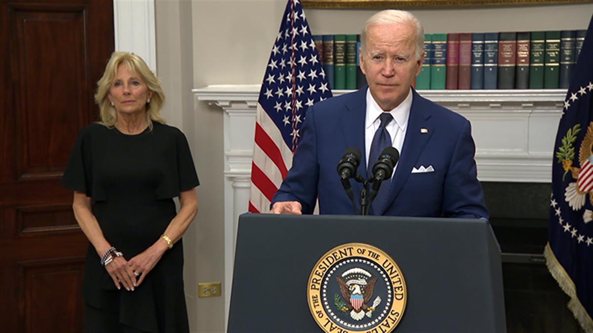 谈到枪支管制立法问题,拜登恳求立法者“将这种痛苦转化为行动”。他回顾了自2012年康涅狄格州新镇桑迪胡克小学大屠杀以来的一系列大规模枪击事件,当时他担任美国副总统。