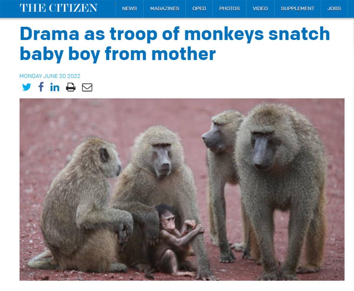 英国《每日邮报》援引坦桑尼亚报纸《公民报》的报道称,惨剧发生在当天下午3点左右,这位母亲正在家中给孩子喂奶,突然一群猴子闯了进来,从她怀里抢走了婴儿。