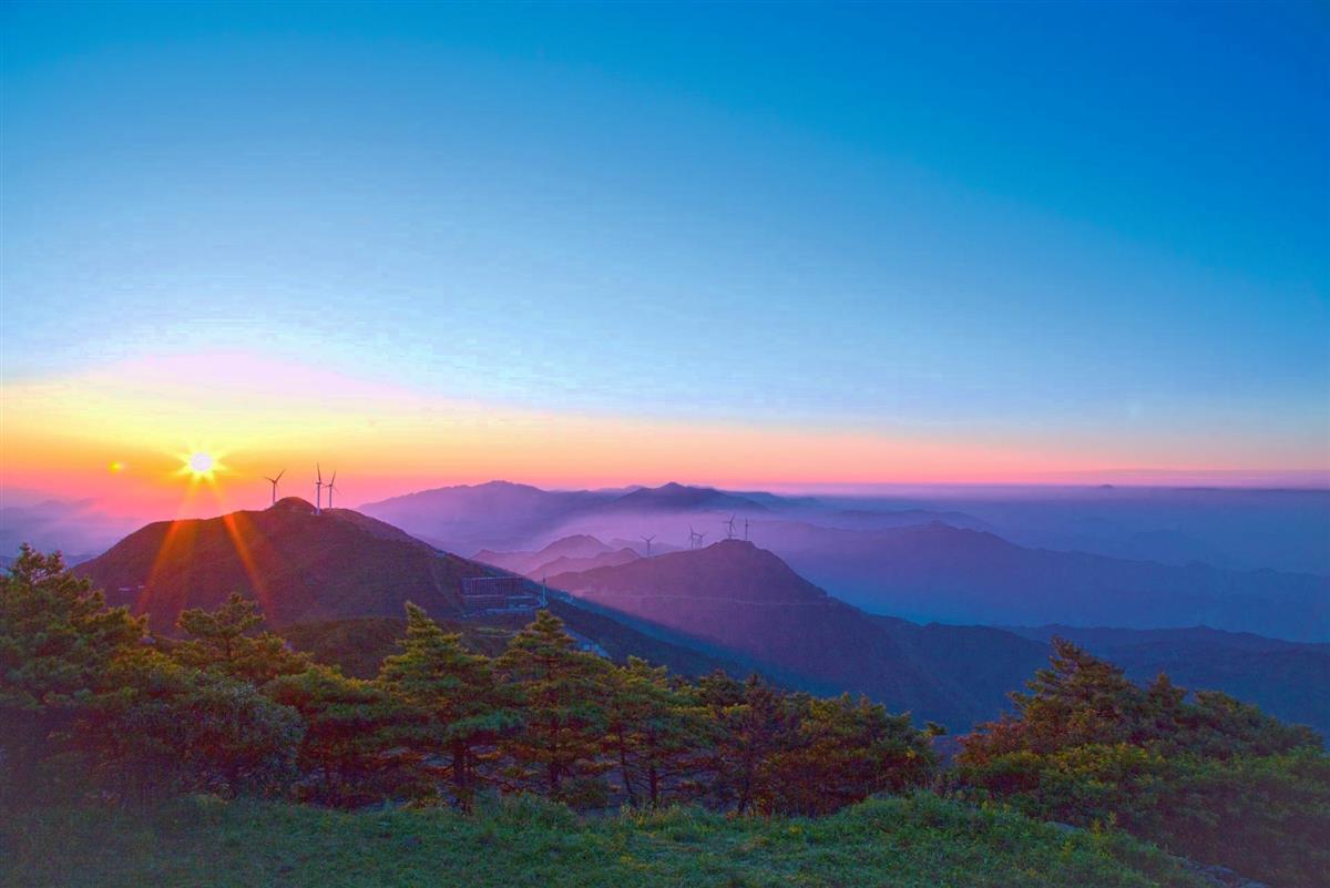 每日清晨,众多游客汇聚九宫山顶峰铜鼓包观赏日出