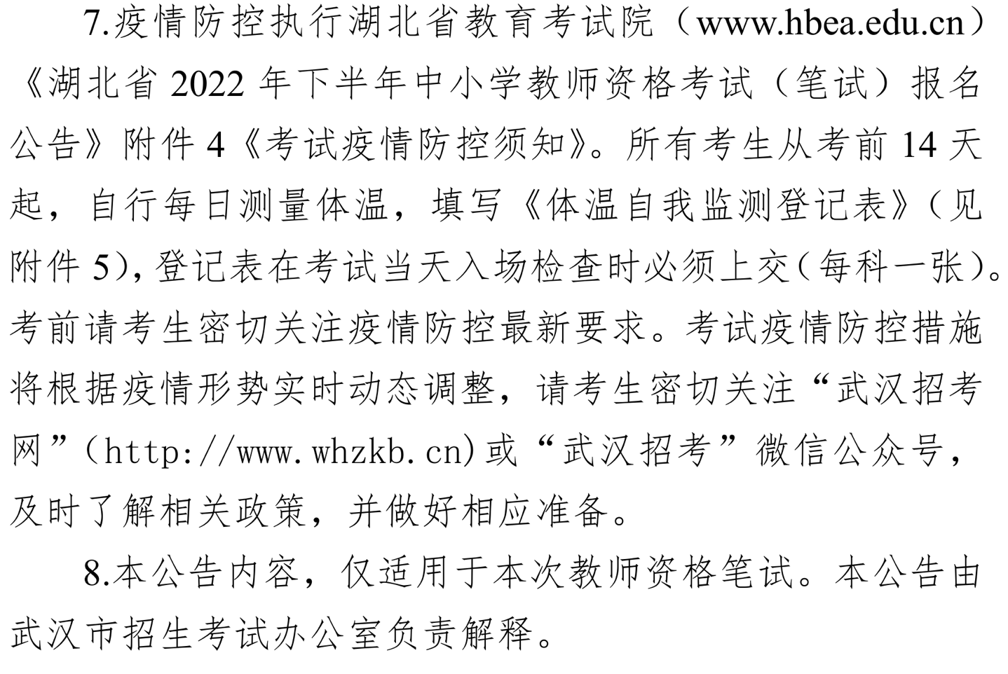 武汉市2022年下半年中小学教师资格考试(笔试)
