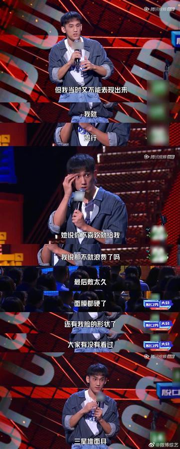 不过,他笑称《脱口秀大会4》首播那天晚上他就给妈妈“跪下了”,“我妈看了之后给我发了一张我的表演截图,她原来不知道我会这么给他们编段子,我就给她回了一个‘跪下’的表情包。”但他又笑,“没生气!她在朋友圈里肯定特有面子。”