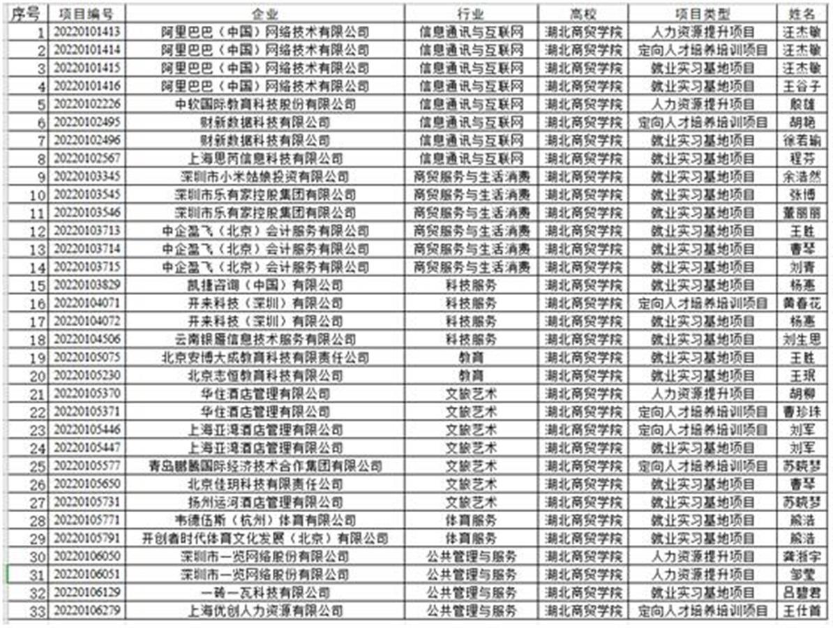 近日,教育部公布了第一期供需对接就业育人项目立项名单,湖北商贸学院有33个项目荣获教育部供需对接就业育人项目立项,项目获批数量在全国立项成功的1268所高校中排名第17位,高居湖北省内高校,排名第一。