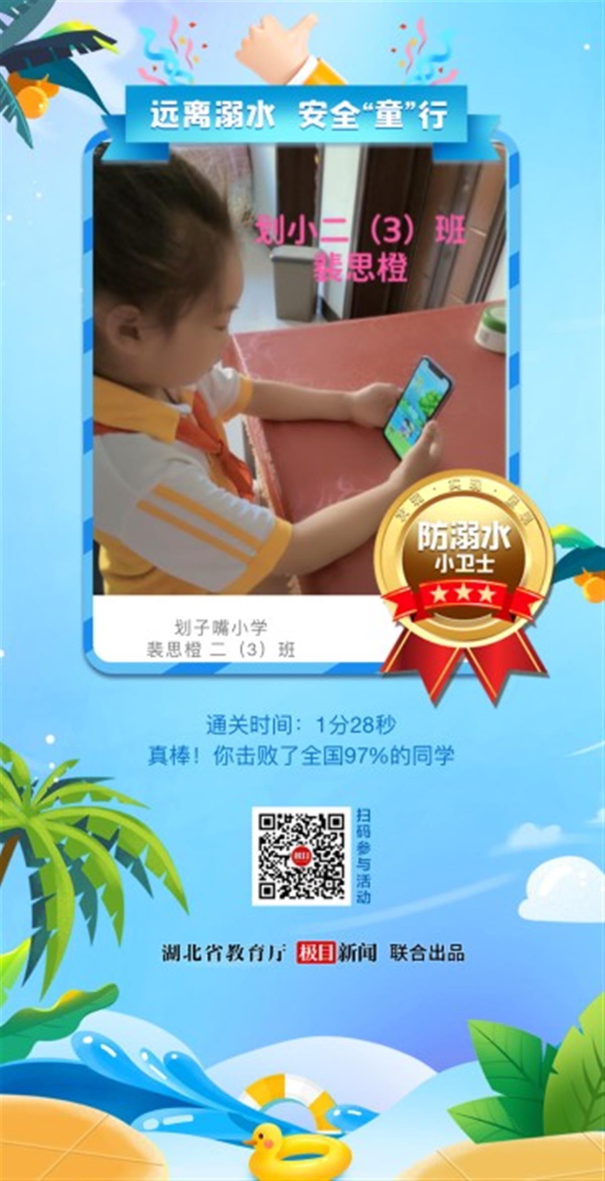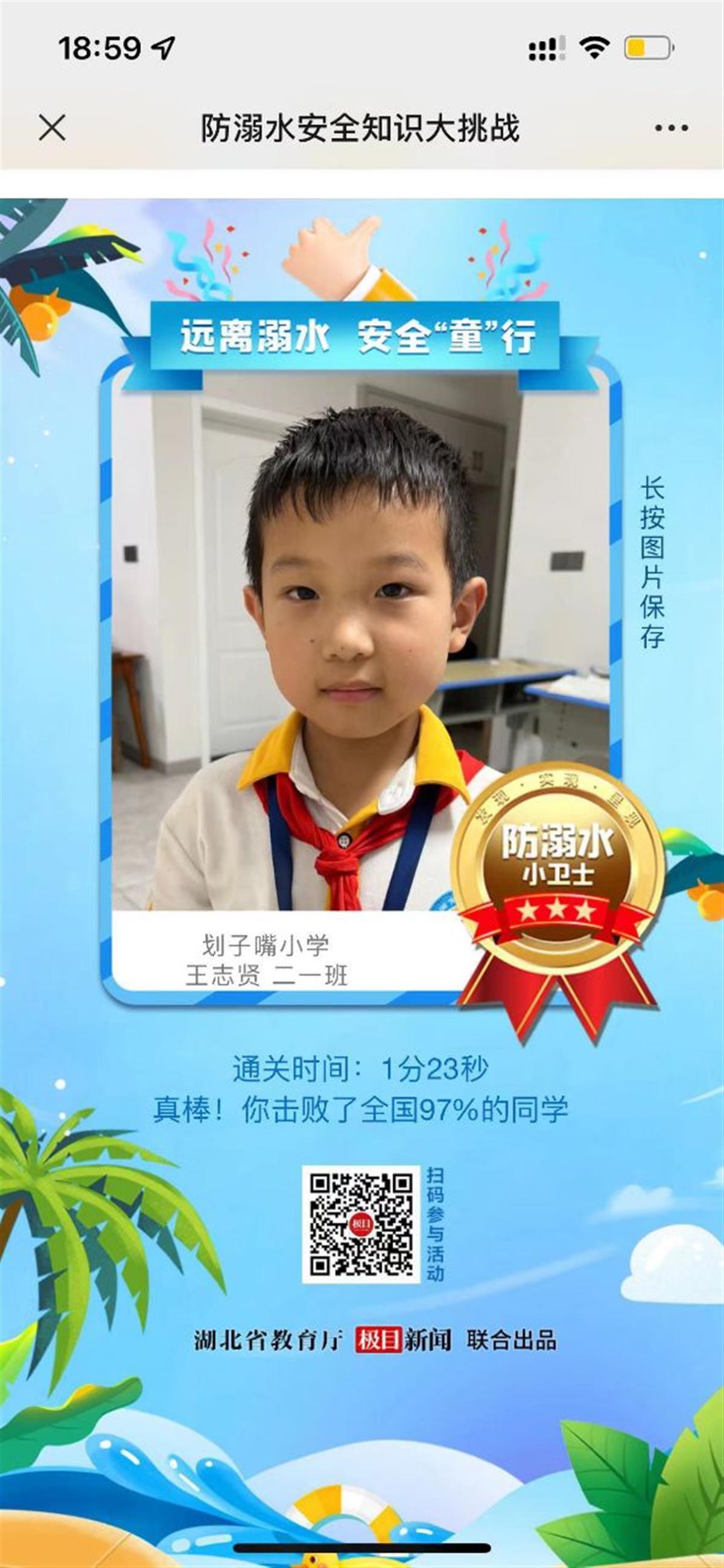 三是学生主动。学生过去是被动参与防溺水教育的。变被动为主动,发挥学生内在积极因素,利用内生力量,增强防溺水主观动能,是我校现在和今后一段时间防溺水工作的重点。目前,我校多数学生已经从“要我防溺水”变为“我要防溺水”。