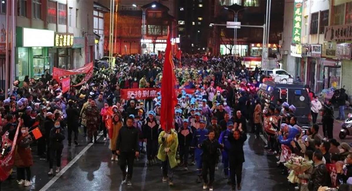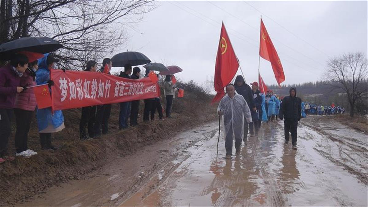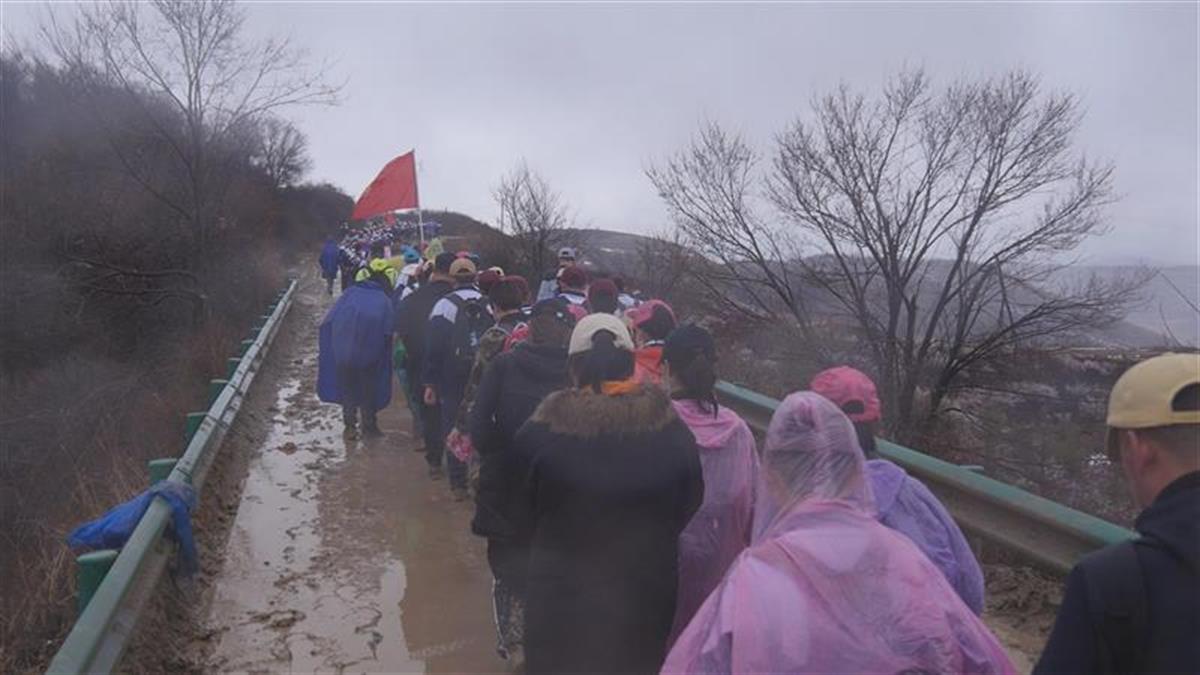当地一家“丰采影视”公司全程参与并跟拍了这次全程徒步祭奠英烈的行动。公司负责人宋先生告诉极目新闻记者,活动当天为雨夹雪天气,弘文中学初中部1400余名师生从学校出发,途经市区、青石峡、黄茆山等多个路段,经历了柏油路、沙土路、泥泞山路等不同的路况,翻山越岭后最终到达位于彭阳县的任山河烈士陵园。学校队伍于凌晨5时10分出发,至当日中午11时30分全部到达目的地,单程便历时6个多小时,徒步距离约27公里。