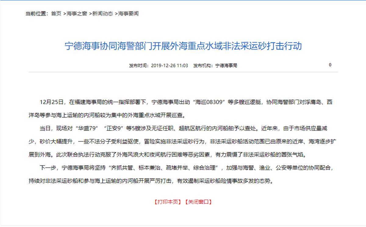 极目新闻记者注意到,2019年12月25日,福建宁德海事局曾协同海警部门开展非法采运砂打击行动。相关部门出动多艘巡逻艇,在参与海上运输的内河船较为集中的外海重点水域巡查。当时,“正安9”等船舶因涉及无证任职、超航区航行被查处。宁德海事局表示,将持续对非法采运砂船和参与海上运输的内河船开展严厉打击,借此遏制采运砂船险情事故多发的态势。