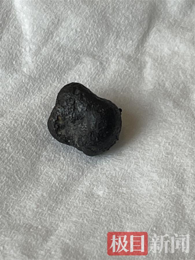 北京天文馆资深陨石专家张宝林前往河南现场指导寻找陨石多日,他告诉极目新闻记者,12月6日下午1时许,一位王姓的陨石爱好者在河南与湖北交界处找到一颗目击陨石(目击陨石是看到火流星陨落且知道具体时间后找到的陨石),这颗陨石仅黄豆大小,重约1.2克,部分陨石附有玻璃质的外壳,整体完整、硬朗,经检测有强烈的磁性,可以确定是陨石。