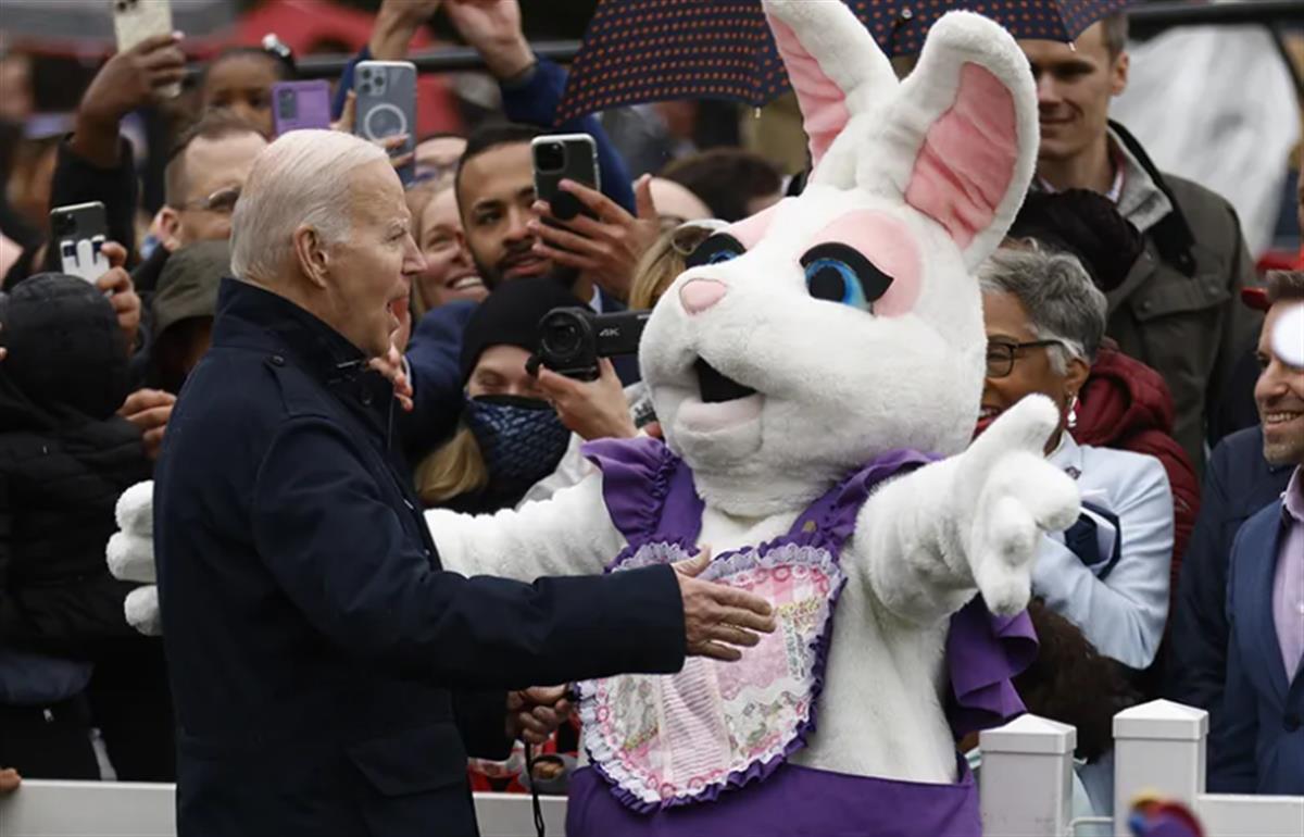 拜登和“兔子”在复活节活动上(图片来源:彭博社)