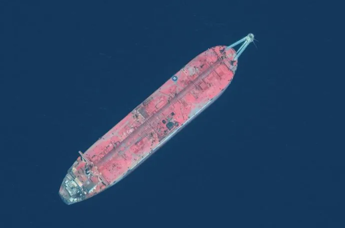 据悉,这艘已有45年历史的废弃巨型油轮名叫FSO Safer,其载有110万桶原油。