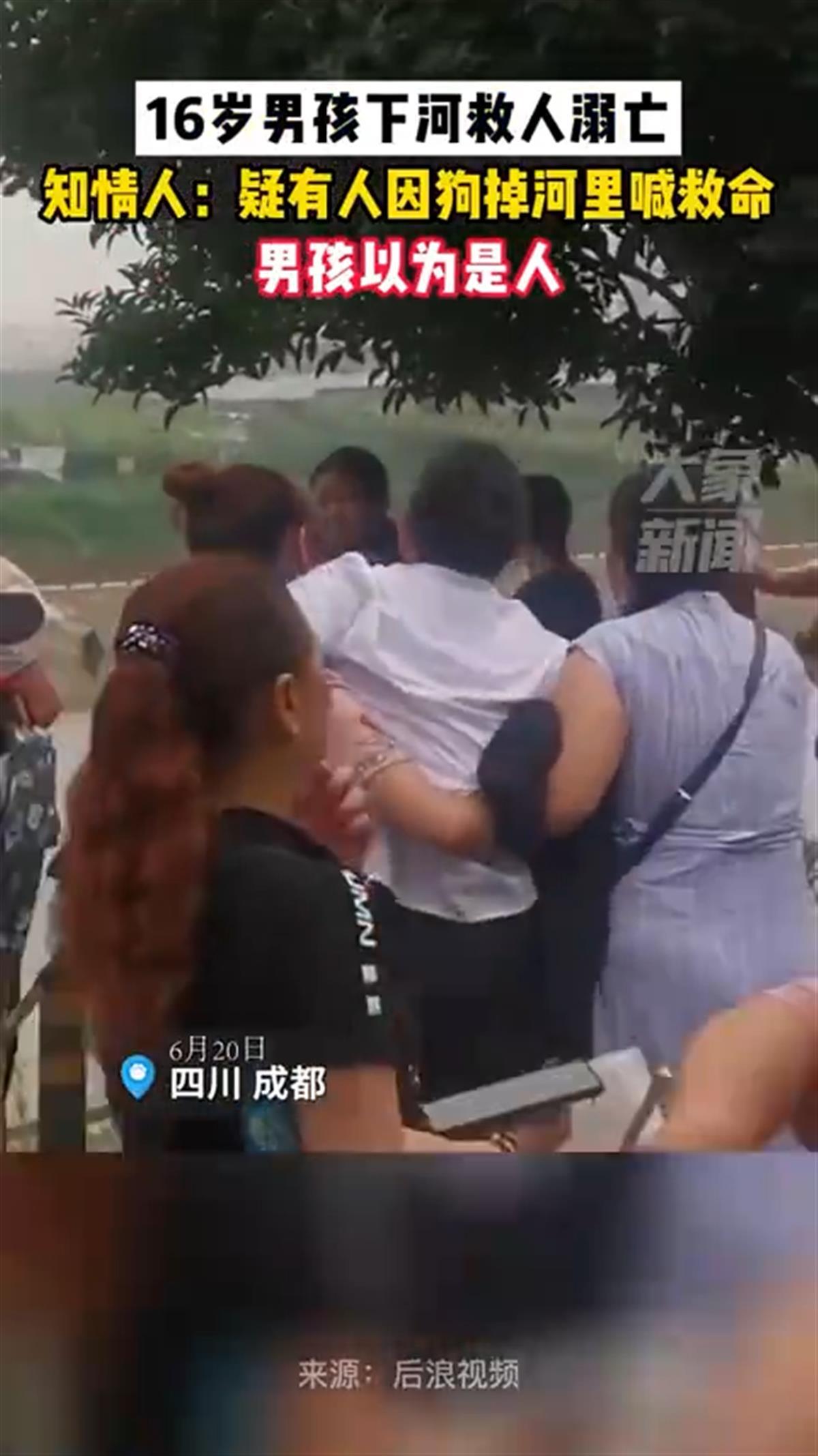 6月21日,网传“16岁男孩疑被误导下河救人溺亡”引发关注。相关报道称,一知情人表示,事发时疑一女子因狗掉进河里喊救命,男孩误以为是人,在施救时发生了意外。22日下午,男孩被搜救人员发现,遗憾的是已无生命体征。(据6月23日极目新闻)