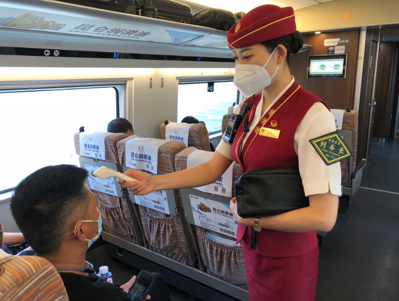 黄丹丹,北京客运段京张高铁车队“飞扬乘务组”列车长,从2019年底京张高铁开通运营,她便带领班组进驻了京张高铁,从筹备到正式通车,经历了太多的不眠之夜,班组同事付出了太多辛勤汗水。为提升高铁乘务客运质量,不断满足旅客个性化需求,她坚持不同种类语言的学习,特别是在手语学习上,下了一番苦功,为的就是确保在乘务服务中与聋哑乘客顺畅沟通,为旅客提供更优质、更暖心、更周到的服务。