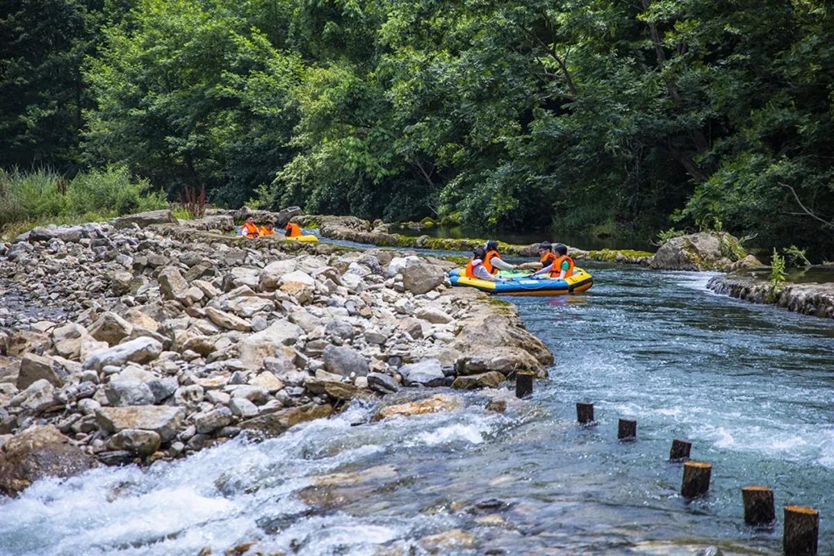 漂流全程8公里,峡谷幽深奇峻,蜿蜒曲折。清澈的河水在两岸夹峙的山谷中奔流而下,橡皮艇时而在急流中飞速前进,时而在河面上轻轻飘过,惊险刺激,让人心凉而又热,尖叫声响彻两岸……