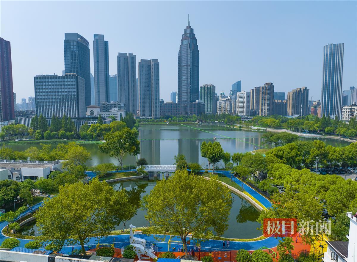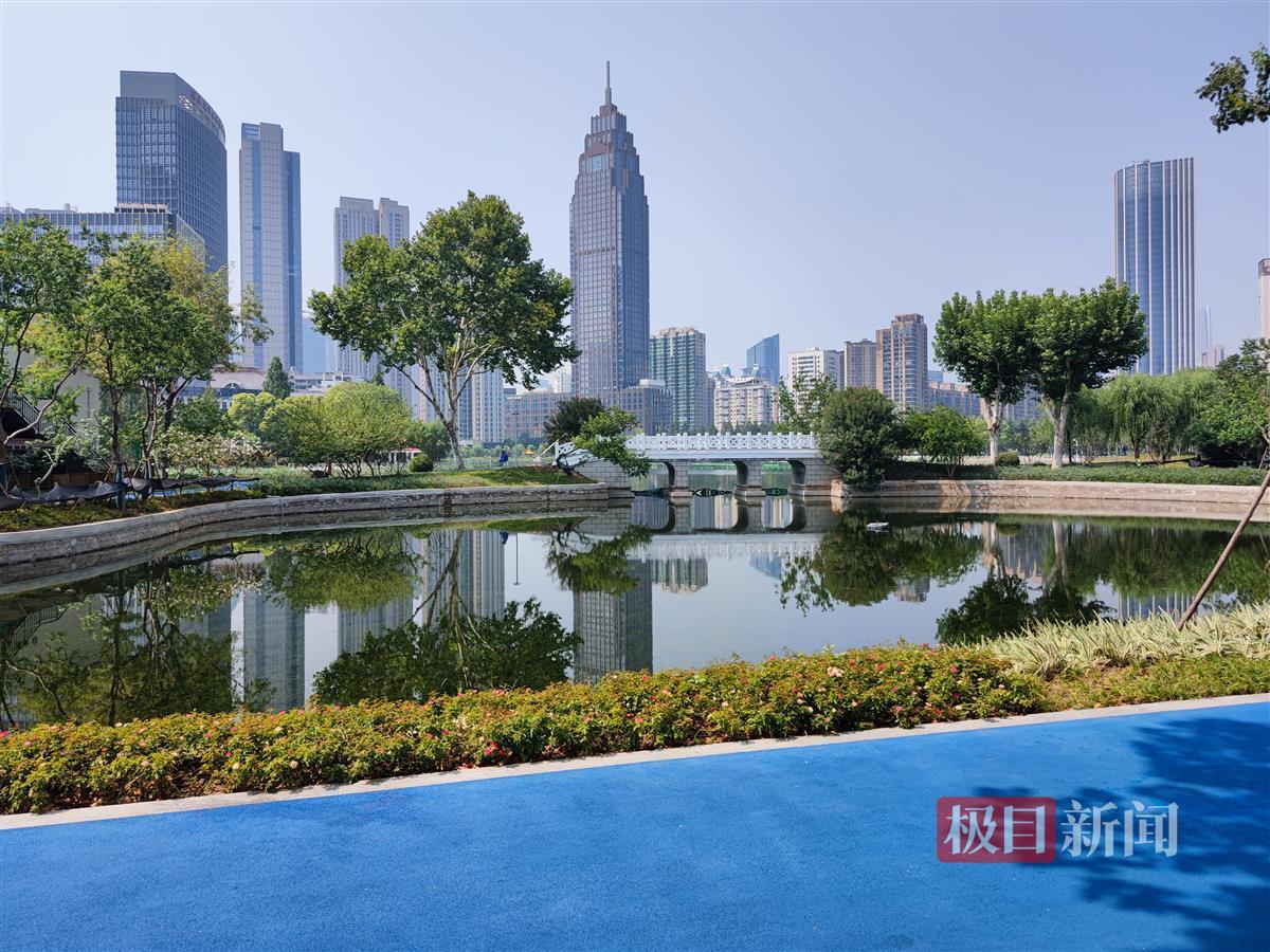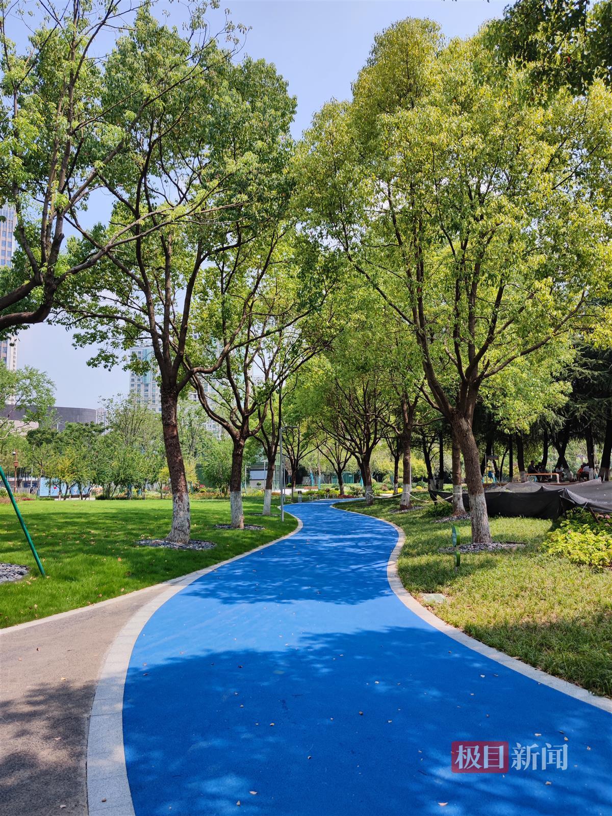 8月2日,经过7个月改造升级后的武汉市江汉区菱角湖公园,湛蓝色的环湖塑胶跑道格外亮眼;亲水平台边,碧绿柳丝垂至湖面、大片白莲花开正盛。