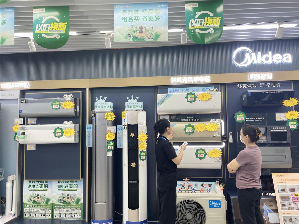 “在网上看到了以旧换新的新闻,正好家里的空调需要换了,今天逛街逛过来了,就过来问问。”家住武汉江汉北路的市民赵女士表示,家里住的老房子,之前的空调已经用了十多年了,本来想熬到明年夏天之前再换新的,“以旧换新优惠机不可失,就准备提前换了。”