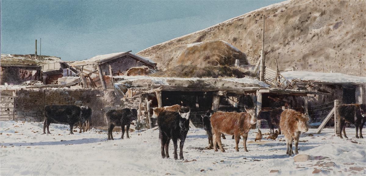 冬日的阳光 纸本水彩 73.5×152.5cm 2020年 刘寿祥最后一张作品