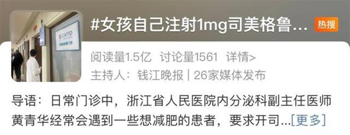 曾经有20多岁的女孩,买了司美格鲁肽后,为了追求减肥效果,直接注射1mg,出现剧烈的恶心、呕吐,一度呕吐到脱水,被紧急送到医院急诊室抢救。3月17日,相关话题冲上微博热搜。