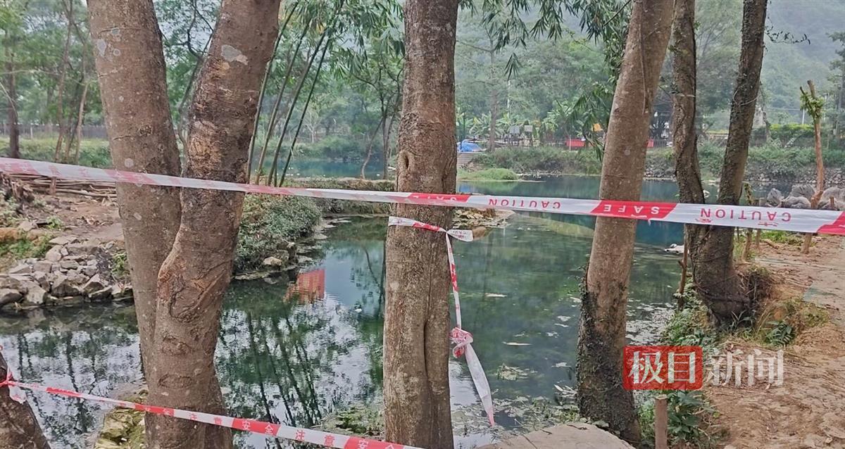 10月12日上午,极目新闻记者从都安县城出发,驾车行驶约35公里便到了位于大兴镇的九顿天窗景区。这里是国内知名洞潜探险家韩颋失联的地方,也是澄江的源头。记者在现场看到,九顿天窗附近已经拉起警戒线,有多名警务人员及政府工作人员在值守。