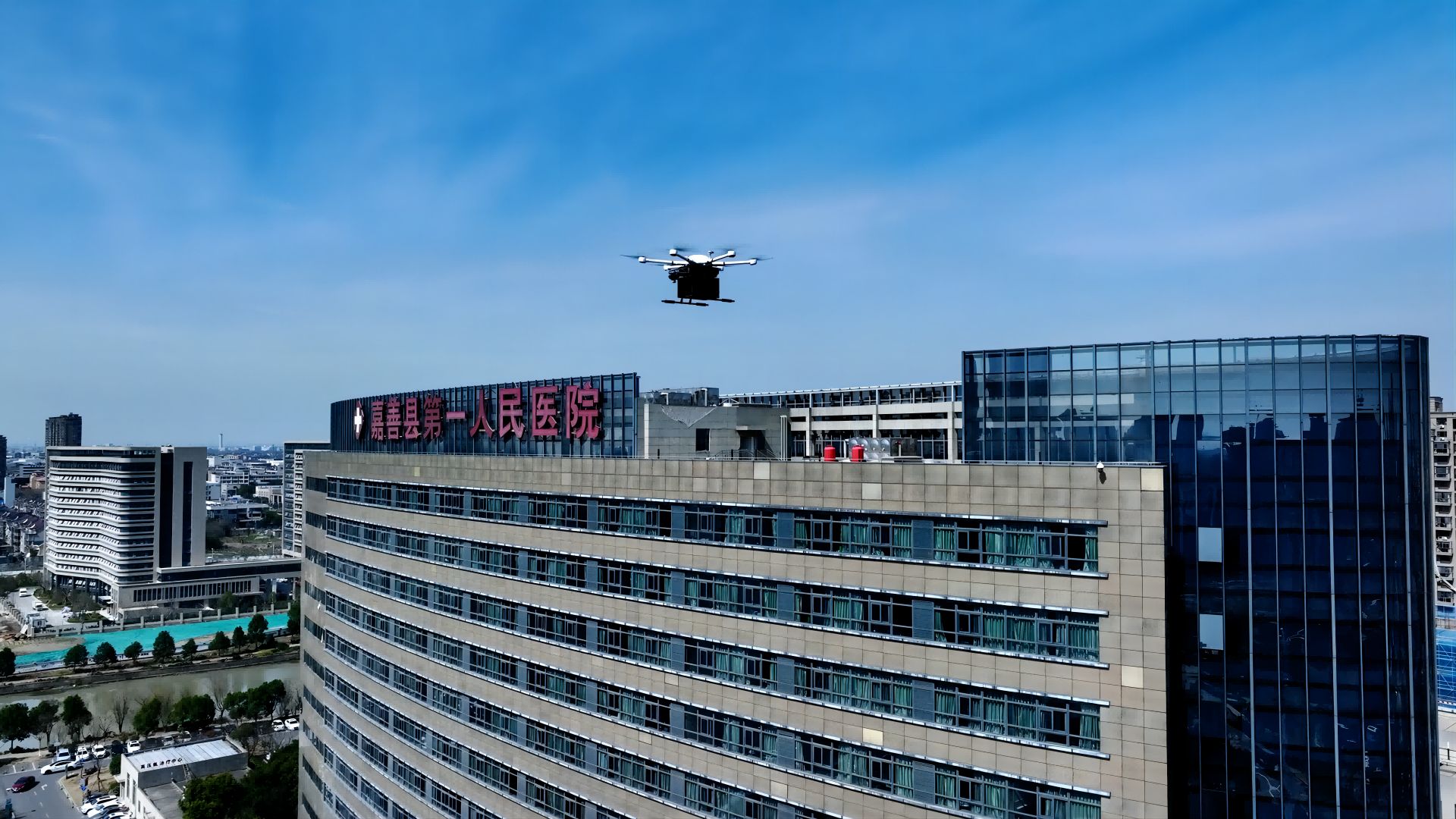 早在2022年2月,嘉善一院就已开通迅蚁无人机样本运输服务,用于连接嘉善一院与嘉善县妇幼保健院、干窑镇卫生院,地面运输距离最远为往返16km,通过搭建迅蚁无人机医疗运输网络,从嘉善一院至嘉善县妇幼保健院航程仅需5分钟,至今已运行上千架次。